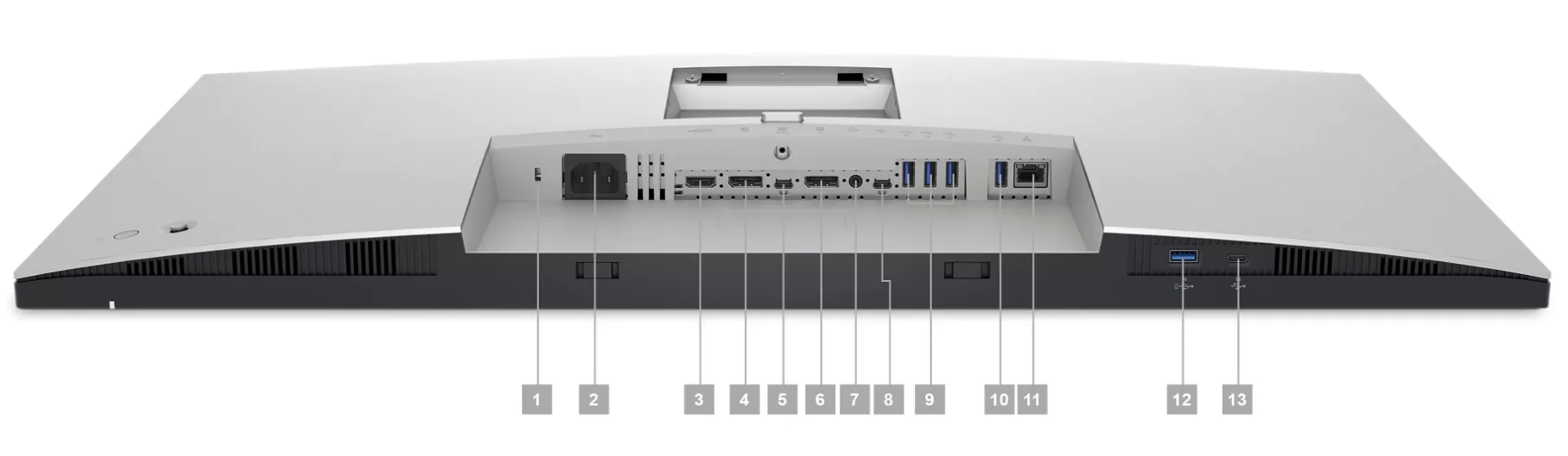 Cổng kết nối: 1xHDMI (HDCP 2.2), 1xDisplayPort 1.4, 1xDisplayPort output, 1xUSB-C 3.2 Gen 2 upstream, 1xUSB-C 3.2 Gen 2 downstream (power up to 15W), 4xUSB 3.2 Gen 2 downstream, 1xUSB 3.2 Gen 2 downstream with Battery Charging 1.2, 1x3.5 mm Audio line-out, 1xUSB-C 3.2 Gen 2 upstream/DisplayPort 1.4 Alt Mode (power up to 90W), 1xLAN (RJ-45)