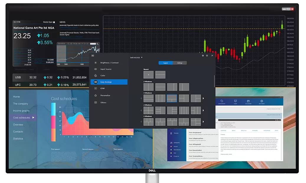 Hỗ trợ: Vesa 100mmx100mm - 200mm , loa 2 x 8W , kết nối được tối đa 4 PC khác nhau sử dụng chung bằng một bàn phím và chuột (KVM và Auto KVM cho phép chuyển đổi liền mạch từ đầu vào PC này sang đầu vào PC khác)