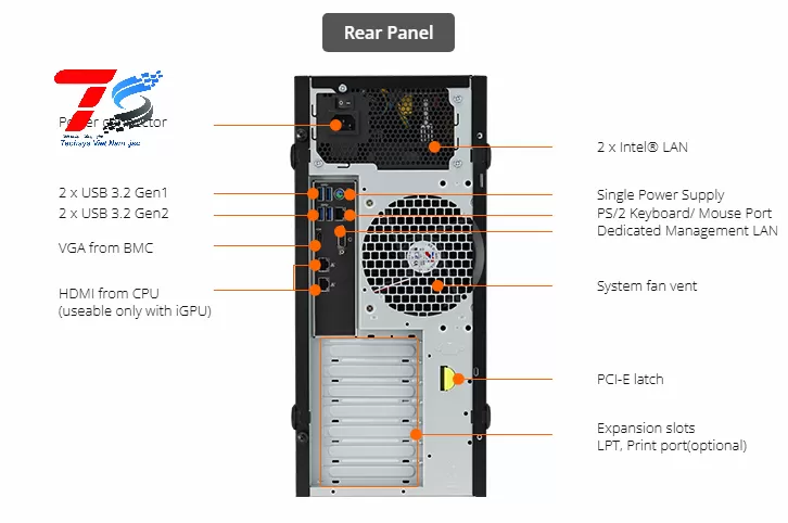 Máy chủ ASUS TS100-E11-PI4-2324G017Z (90SF02N1-M00260) E-2324G/16GD4/1TB HDD/C256/2 x Intel LAN I210-AT/300W/No OS/ĐEN