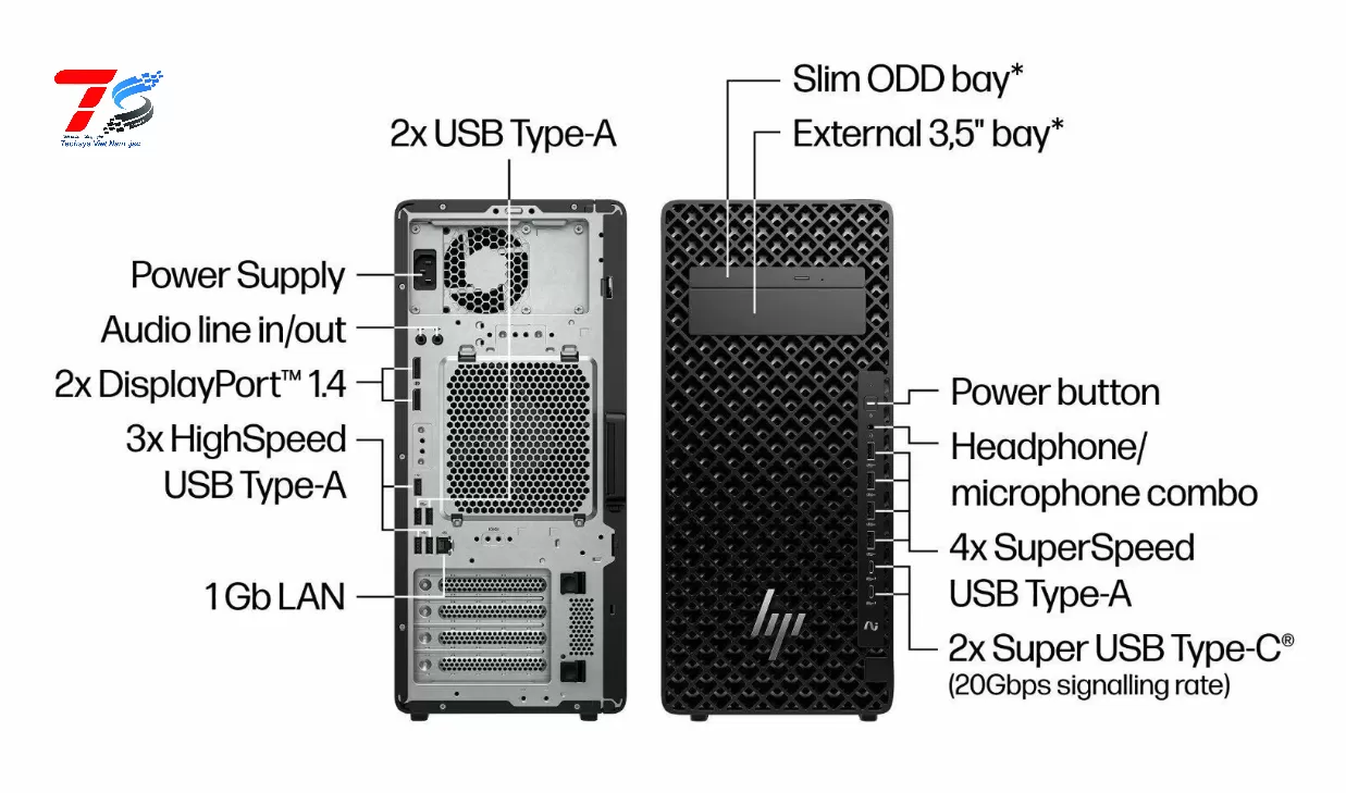 Máy tính để bàn HP Z2 Tower G9 Workstation - 4N3U8AV (i7-14700/8GB RAM/256GB SSD/3 Năm )