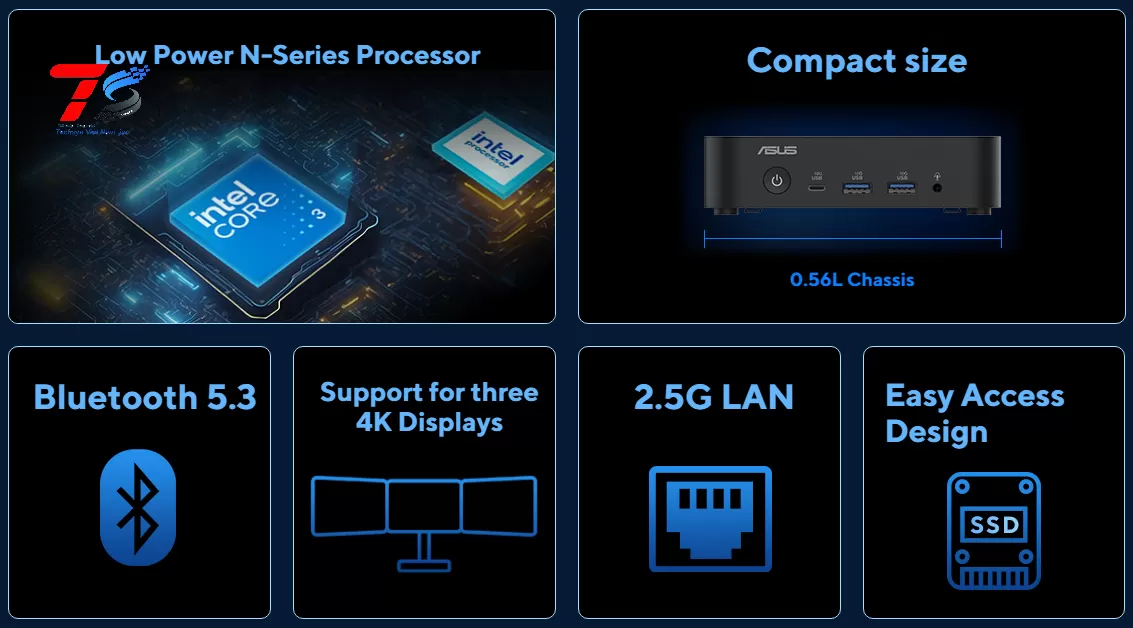 Máy tính Mini PC Asus NUC 14 Essential - RNUC14MNK150 - Core 3 N150/DDR5 4800/M.2 PCIe ...