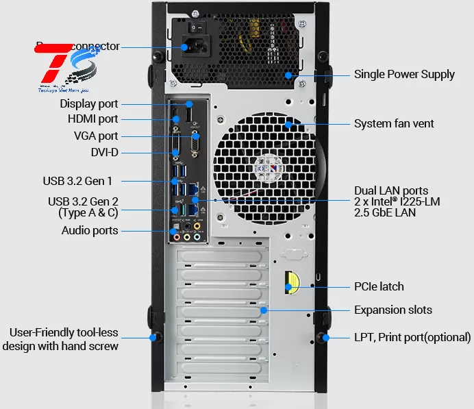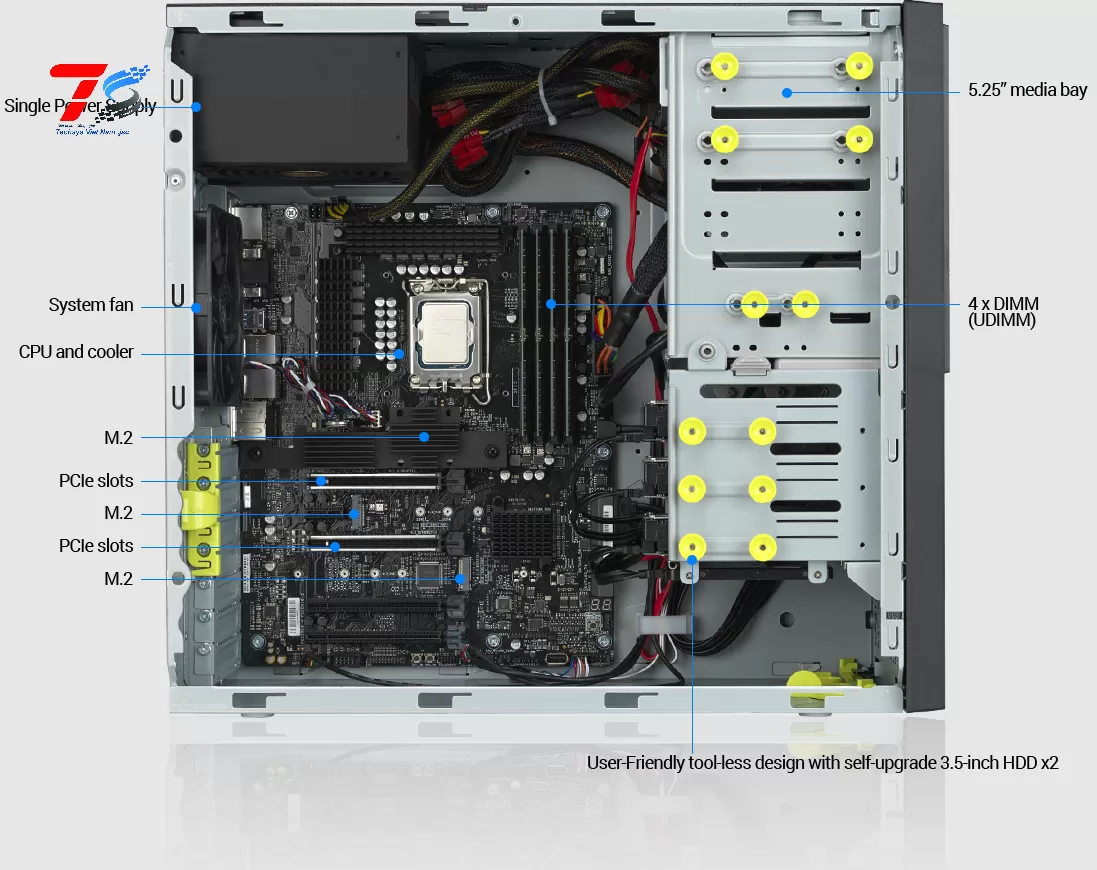 Memory : 8GB DDR5 Non-ECC UDIMM 4800 MHz (Slots : 4 (2-channel) - Maximum up to 128GB UDIMM)