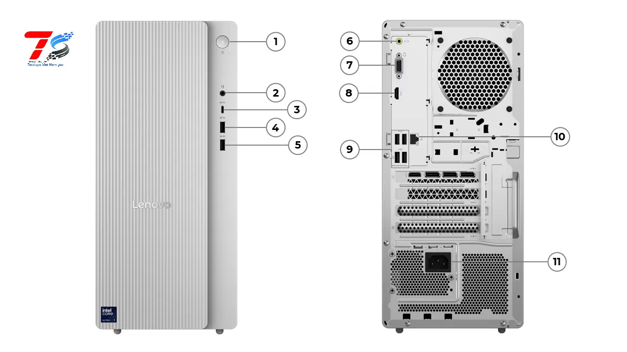 Máy tính để bàn Lenovo IdeaCentre Tower 17IAS10 (91B10018VN) Ultra 5-225/8GB DDR5/512GB SSD/WF+BL/DOS/1Y